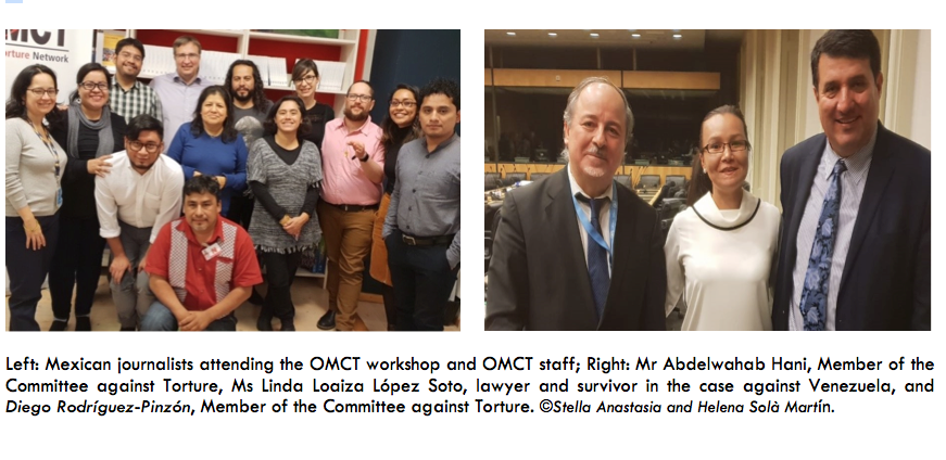 From 12 to 17 November 2018, the OMCT conducted a workshop in Geneva for eight journalists coming from various regions of Mexico in preparation for the review of Mexico before the Committee Against Torture in April-May 2019. The training took place during the first week of the 65th CAT session, which gave them the opportunity to follow the CAT’s review of Guatemala. The workshop aimed to strengthen their knowledge and understanding of UN anti-torture mechanisms, notably through presentations and meetings with OMCT staff, CAT experts, UN special procedures, INGOs, journalists from Geneva and from the international community. During their stay in Geneva, the participants were interviewed by RTS programme "Tout un monde" and a news story was published by Tribune de Genève, both highlighting the current risks and challenges journalists face in Mexico, which threaten their lives, integrity and freedom of expression, amidst one of the worst human rights crisis in Mexico’s contemporary history.